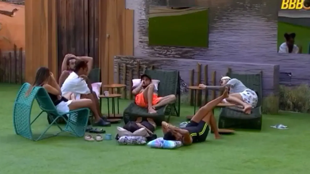 Renata retorna ao jogo com energia máxima, despertando todos aos gritos: “BOOOOM DIA, BRASIL! A SURUCUCU VOLTOU!”. Ela revela que ouviu informações do lado de fora e expõe Aline, alegando