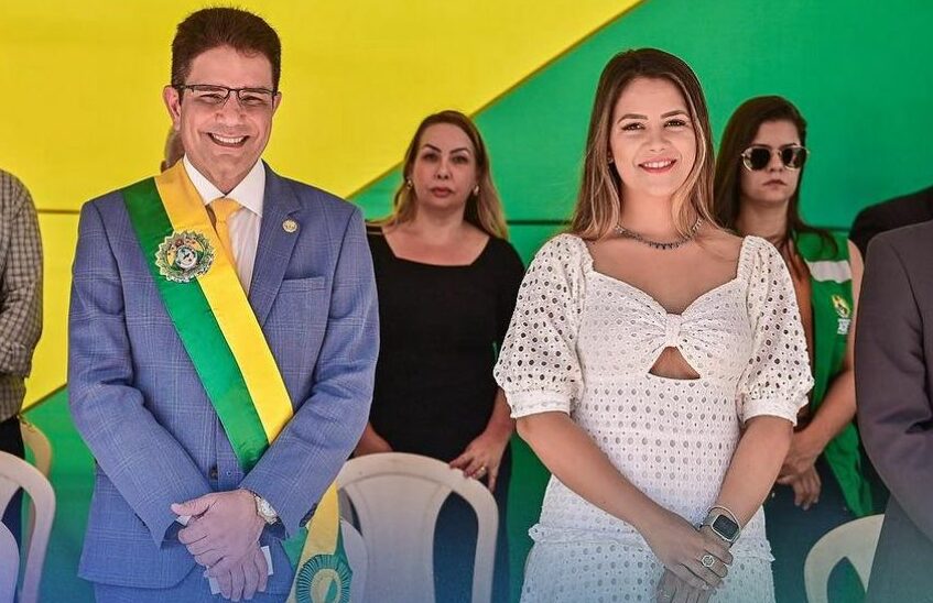 O governador Gladson Cameli (Progressistas) e sua nova namorada, a engenheira civil Hanna Salim, protagonizaram neste domingo (19) a estreia pública como casal durante uma solenidade em Rio Branco (AC).