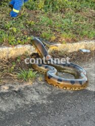 VÍDEO: mais uma sucuri é avistada por trabalhadores atravessando a BR-364 no interior do Acre