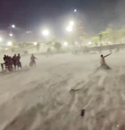 Uma forte ventania atingiu a Praia do Itararé, em São Vicente (SP), na noite do último domingo (21), provocando pânico entre moradores e banhistas. Imagens registradas no local mostram pessoas