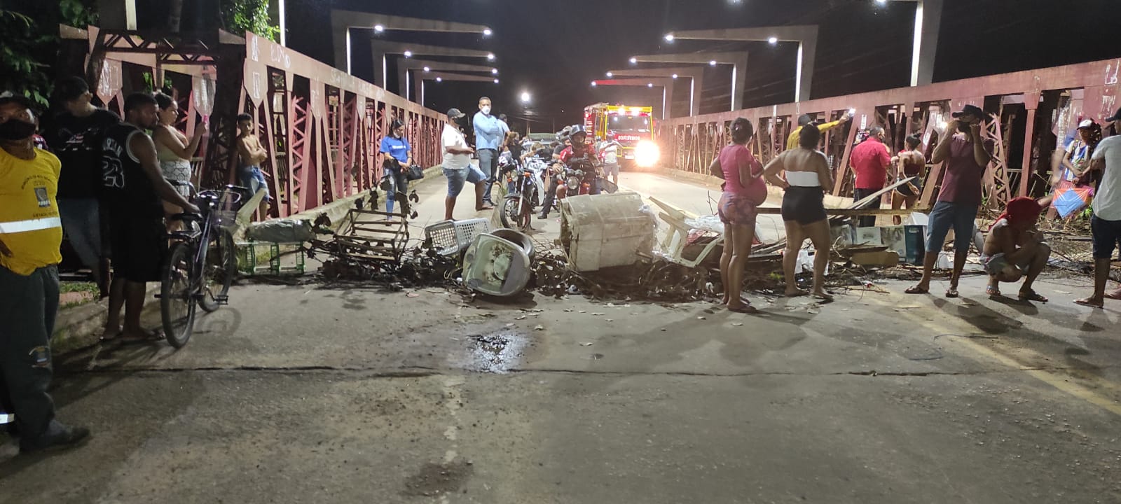 Os moradores do bairro Édson Cadaxo fecharam a ponte do São Francisco na noite desta segunda-feira (8), durante protesto devido falta de ajuda e apoio do poder público com as