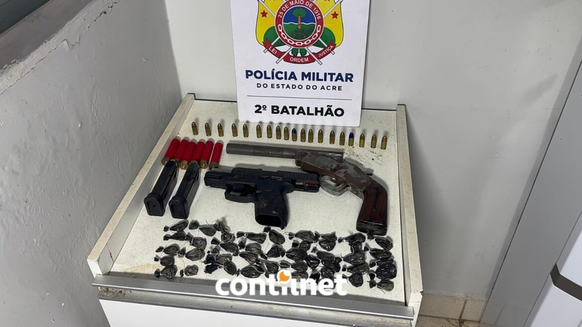 Ainda durante a ação, em buscas no interior do imóvel ocupado pelo suspeito, os militares encontraram uma escopeta calibre 28, seis cartuchos do mesmo calibre e 42 trouxinhas de cocaína.