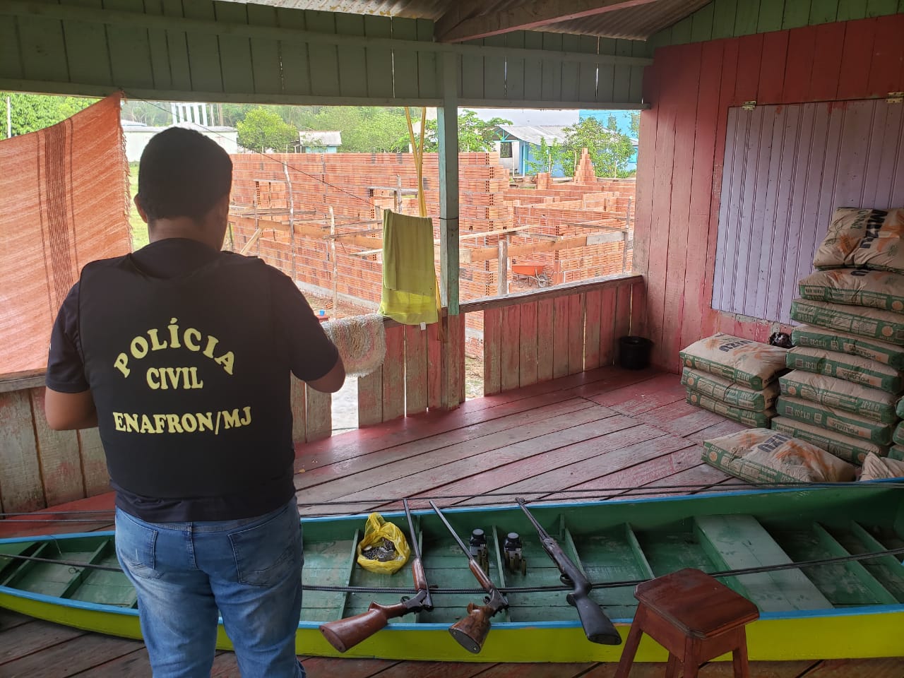Os mandados foram cumpridos na zona rural de Cruzeiro do Sul e com foco principal em alvos identificados na localidade denominada Liberdade. Além da prisão em flagrante por porte ilegal de arma de fogo a Polícia apreendeu armas, drogas e munições.