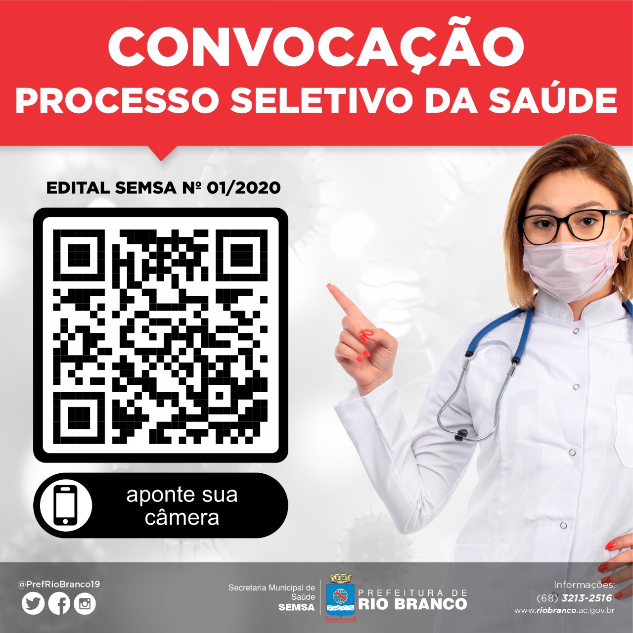 Publicado no Diário Oficial desta segunda-feira, 17, a convocação dos aprovados no processo seletivo simplificado SEMSA 01/2020, para contratação, em caráter excepcional e por tempo determinado, de médico, enfermeiro, psicólogo, nutricionista, farmacêutico, cirurgião dentista, técnico de laboratório, agente de vigilância em saúde, educador social e auxiliar de farmácia para atuação na atenção primária do município de Rio Branco, durante o período de enfrentamento ao novo coronavírus.