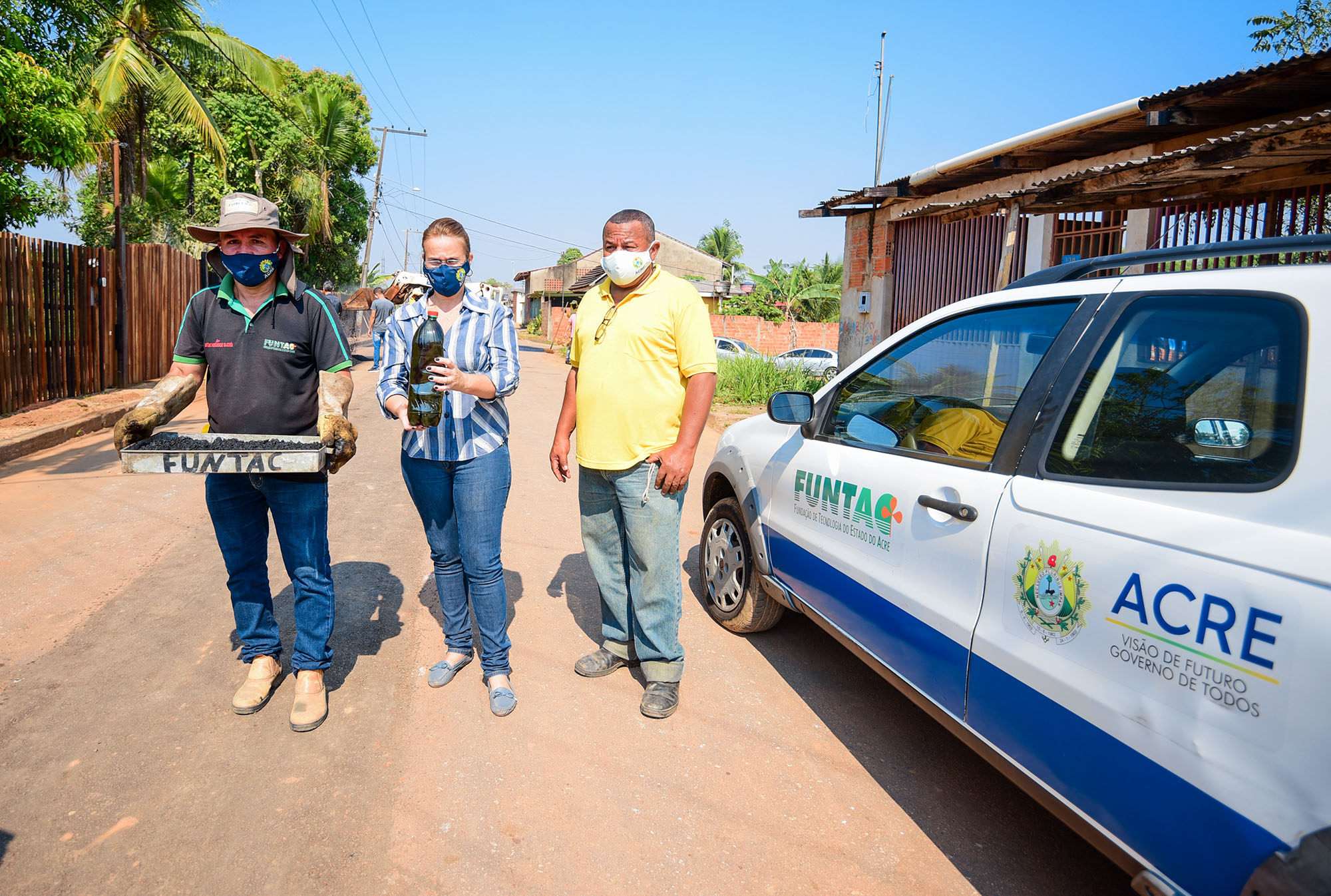 A Fundação de Tecnologia do Acre está aqui para fazer a coleta de massa asfáltica e do ligante usado no tapa-buracos para que a gente possa processar esse material em laboratório e realizar os ensaios necessários. Com base nos resultados, a Seinfra do município, vai ter as infrações para que ela possa se valer, em algum momento, para confrontar com o material contratado junto a empresa responsável pela execução da obra”, esclareceu Adriana Moura, engenheira civil da Funtac.