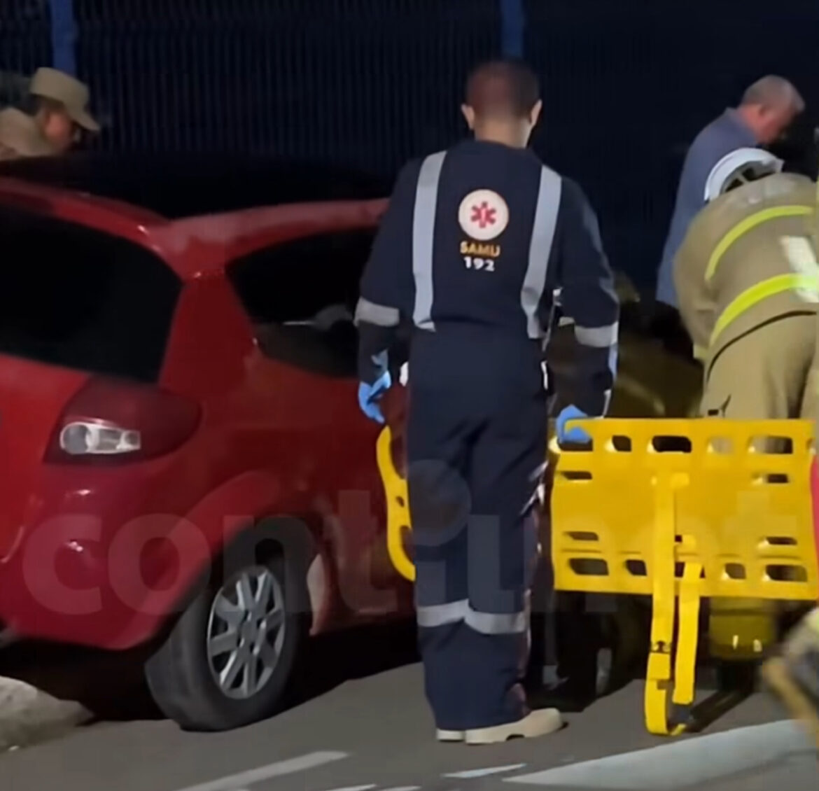 O impacto e a posição final do carro fizeram com que uma das vítimas ficasse imobilizada debaixo da estrutura, exigindo atuação imediata das equipes especializadas do Corpo de Bombeiros Militar do Distrito Federal (CBMDF).