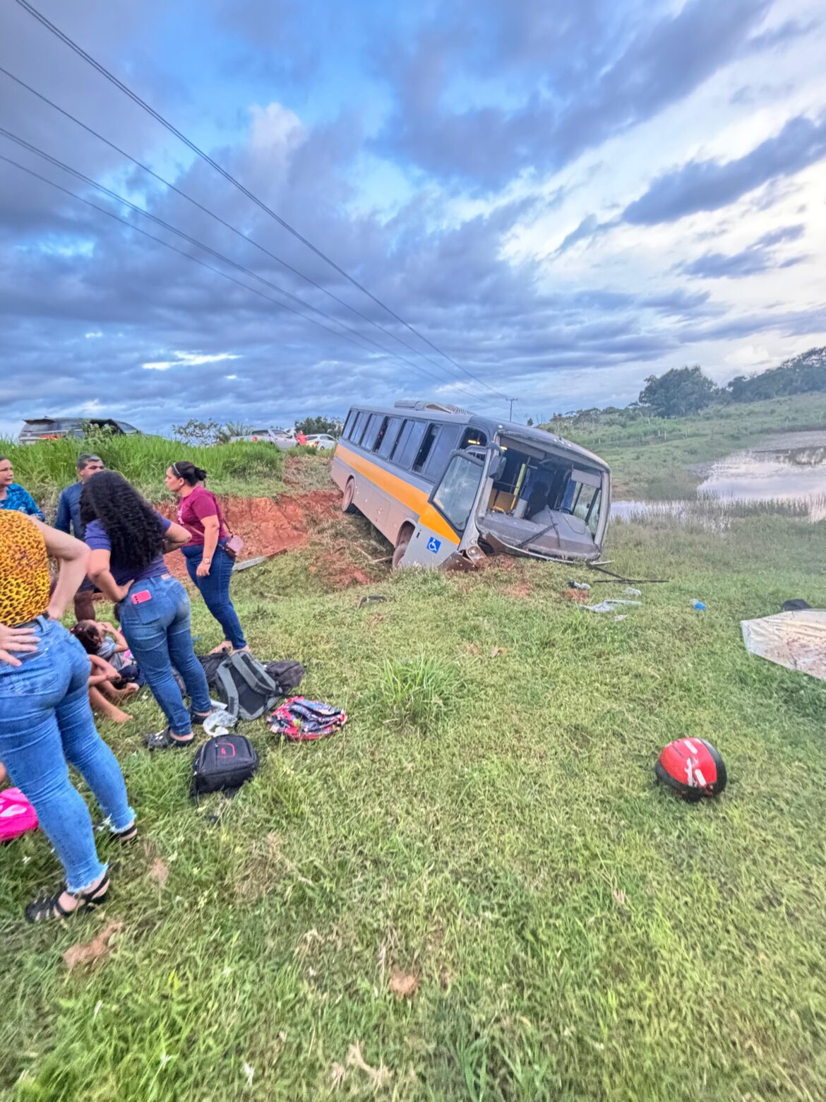 Um ônibus escolar da Secretaria Municipal de Educação de Plácido de Castro saiu da pista e caiu no sangradouro de um açude após sofrer a quebra da barra de direção na tarde desta sexta-feira (28), enquanto trafegava pela rodovia AC-40. No veículo estavam estudantes que retornavam da escola para a zona rural do município.