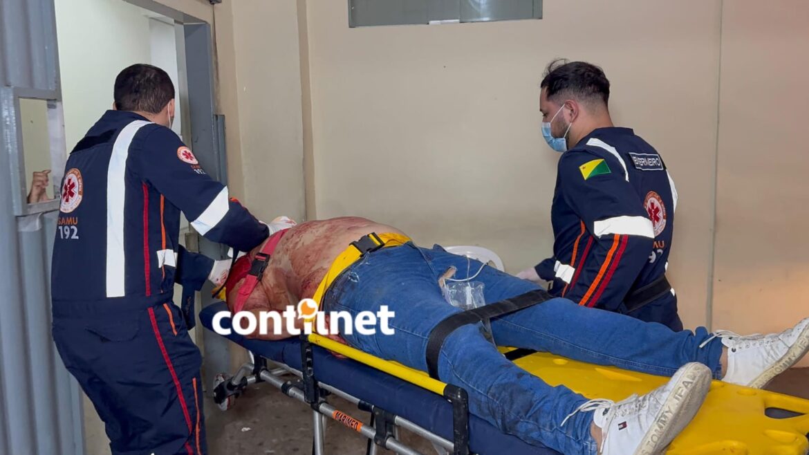 A estrutura improvisada foi erguida em uma área de risco, próxima ao leito do rio, que nesta época do ano apresenta variações de nível devido ao período de seca.