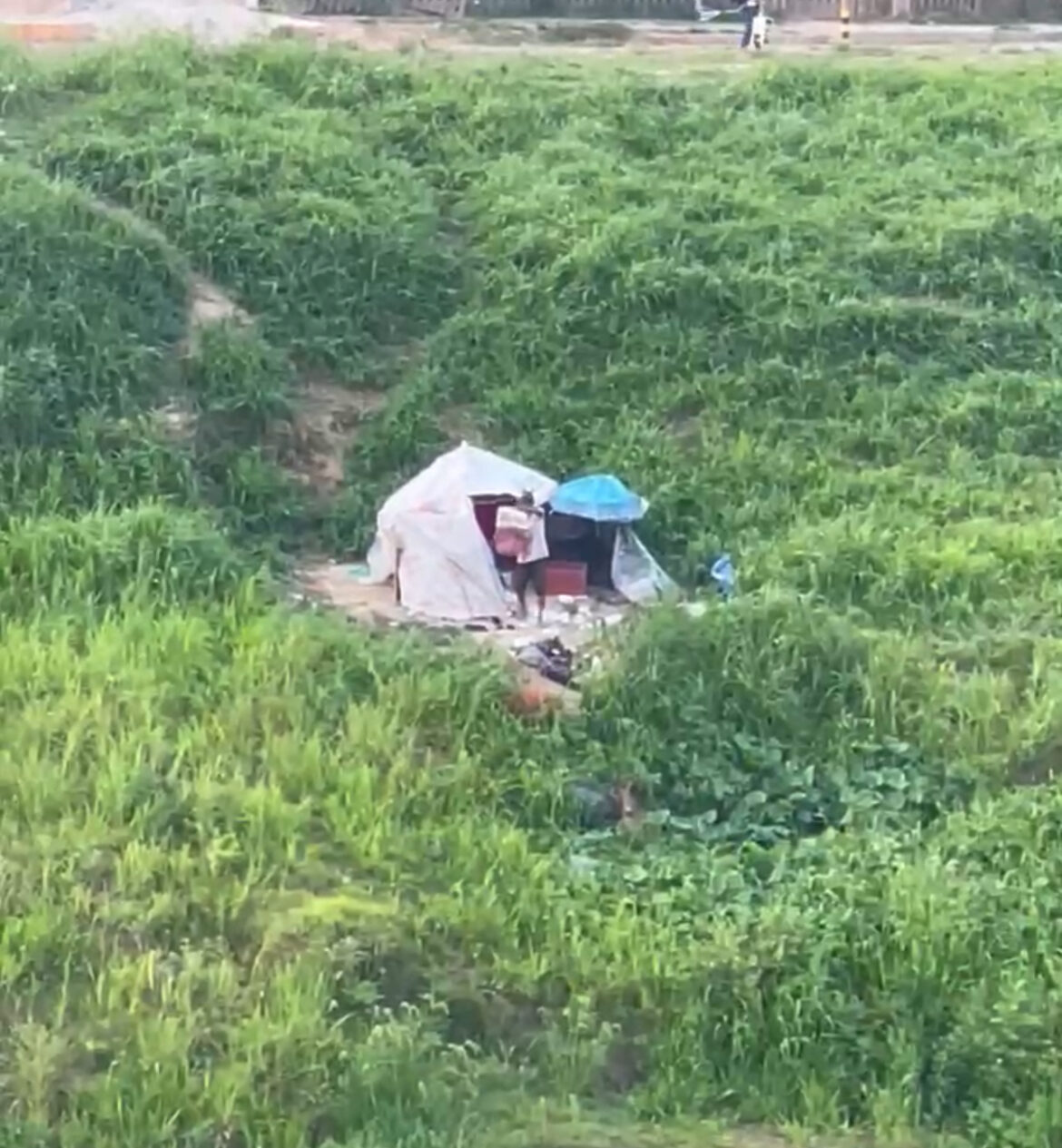 Segundo testemunhas, o homem teria se instalado no local há alguns dias e utiliza o espaço tanto para dormir quanto para guardar seus poucos pertences. A construção precária foi feita de forma improvisada, com pedaços de madeira, lona plástica e restos de materiais encontrados nas proximidades.