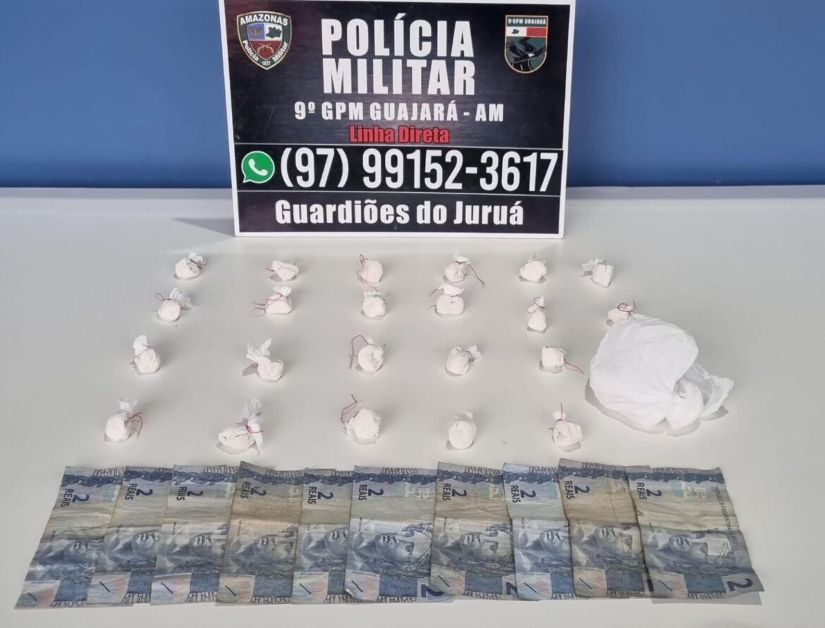 Segundo informações da corporação, a equipe da viatura 25-0371, comandada pelo 3º sargento Romário, recebeu denúncia de que um passageiro de um táxi-lotação estaria levando drogas para o Amazonas. O veículo, um Cobalt branco, foi abordado e, durante a revista pessoal, os policiais encontraram várias porções de substância semelhante à cocaína, além de R$ 20 em espécie com o suspeito.