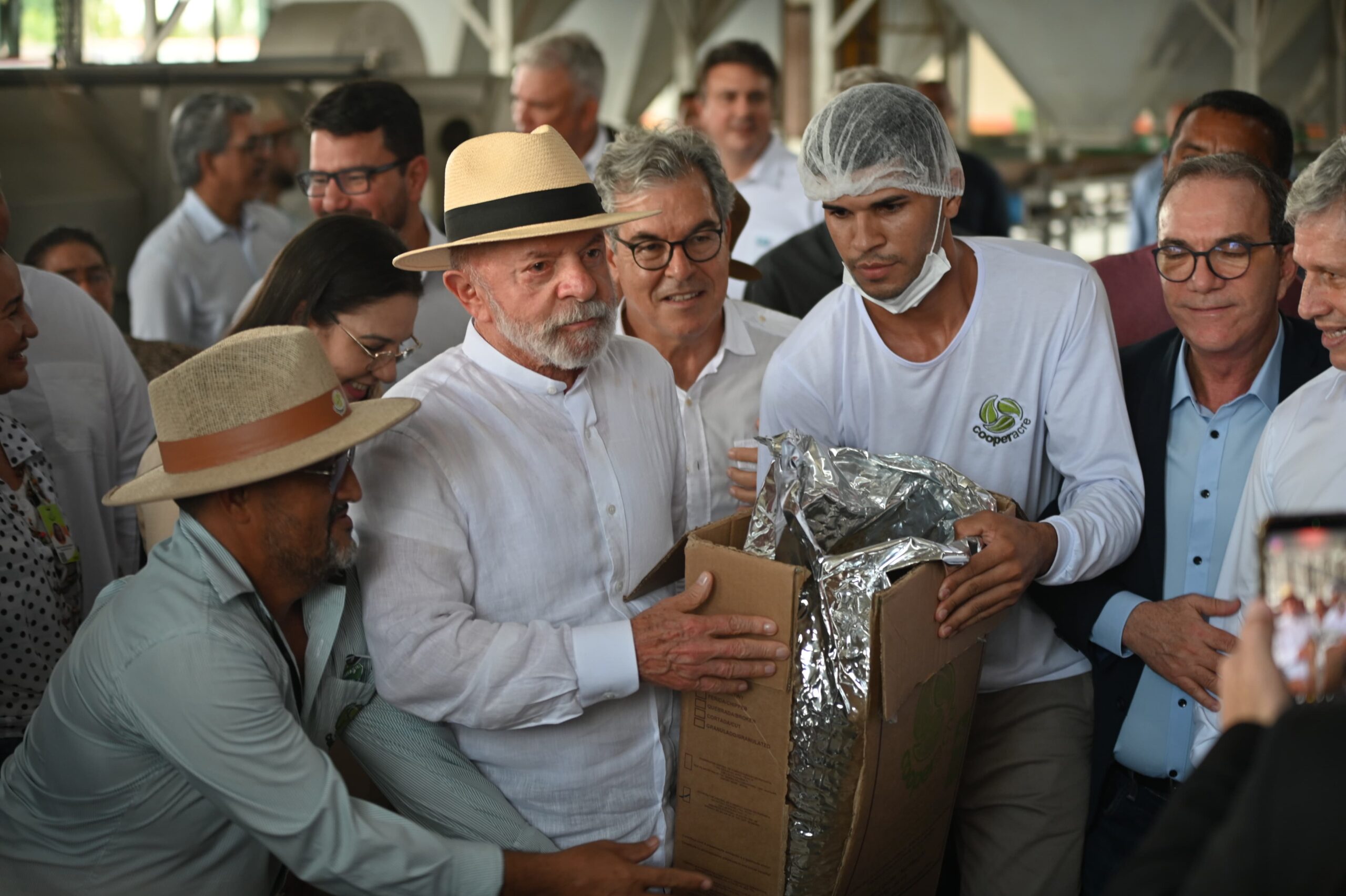 Após finalizar o discurso, Jorge foi aplaudido pelo público, abraçado por Lula e cumprimentado pelo governador Gladson Cameli.