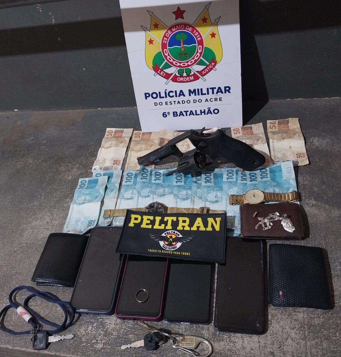 Durante patrulhamento na noite do último sábado, 12, uma guarnição da Polícia Militar frustrou um assalto em andamento a uma distribuidora localizada nas imediações do Ginásio do bairro Cobal, em Cruzeiro do Sul. A ação rápida resultou na recuperação de cerca de R$ 17 mil, na apreensão de diversos bens roubados e na prisão de um dos suspeitos, que foi baleado durante confronto com os policiais.