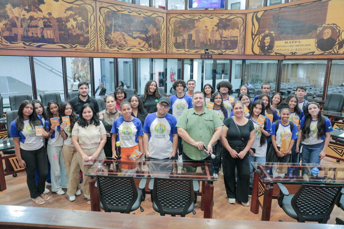 Na manhã desta quinta-feira (10), a Assembleia Legislativa do Acre (Aleac) recebeu a visita de 30 alunos da Escola Professora Clícia Gadelha, de Rio Branco. A atividade que foi conduzida pelo chefe do cerimonial Neto Barros, e por representantes da Escola do Legislativo, marcou o início de um projeto da Mesa Diretora que visa promover visitas guiadas ao Legislativo acreano.