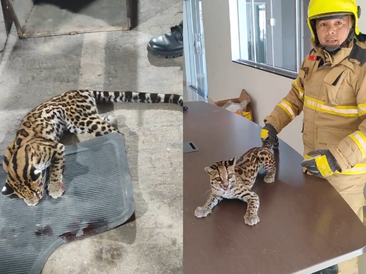 Sensibilizados com a situação do animal silvestre, o casal acionou imediatamente o Corpo de Bombeiros, que fez o resgate e conduziu a jaguatirica até o quartel, onde ela permaneceu sob observação durante toda a madrugada.