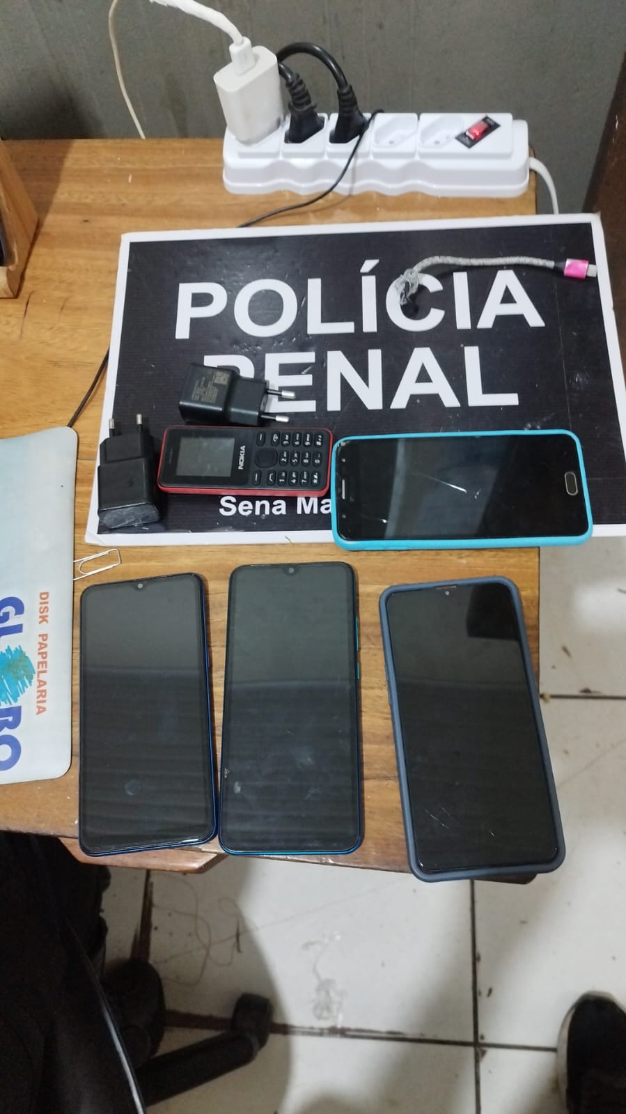 Policiais penais lotados no presídio Evaristo de Moraes, em Sena Madureira, apreenderam na manhã deste domingo (11), dois malotes contendo pelo menos cinco aparelhos celulares e outros componentes eletrônicos que