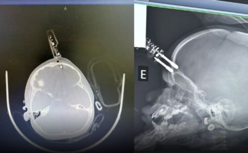 Uma menina de 1 ano passou por cirurgia de urgência, na terça-feira (13), após cair da cama e ter um carregador cravado na testa. O caso aconteceu em Divinópolis (MG).