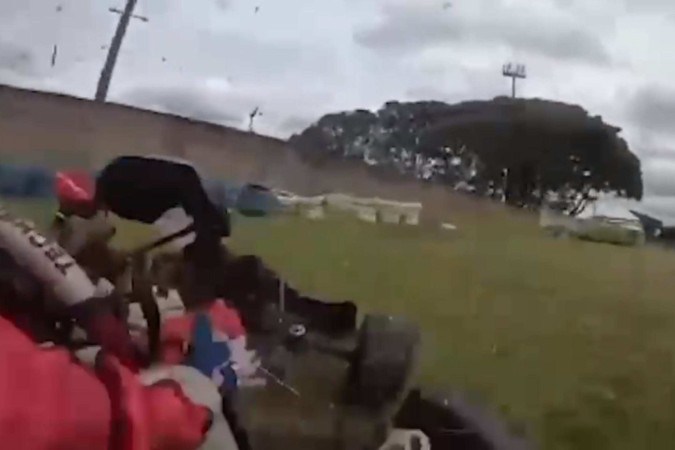 Um vídeo mostra o momento em que o volante do kart pilotado pelo advogado Bráulio José de Carvalho Antão, 46 anos, sai do veículo. O acidente ocorreu no Kartódromo Ayrton Senna,